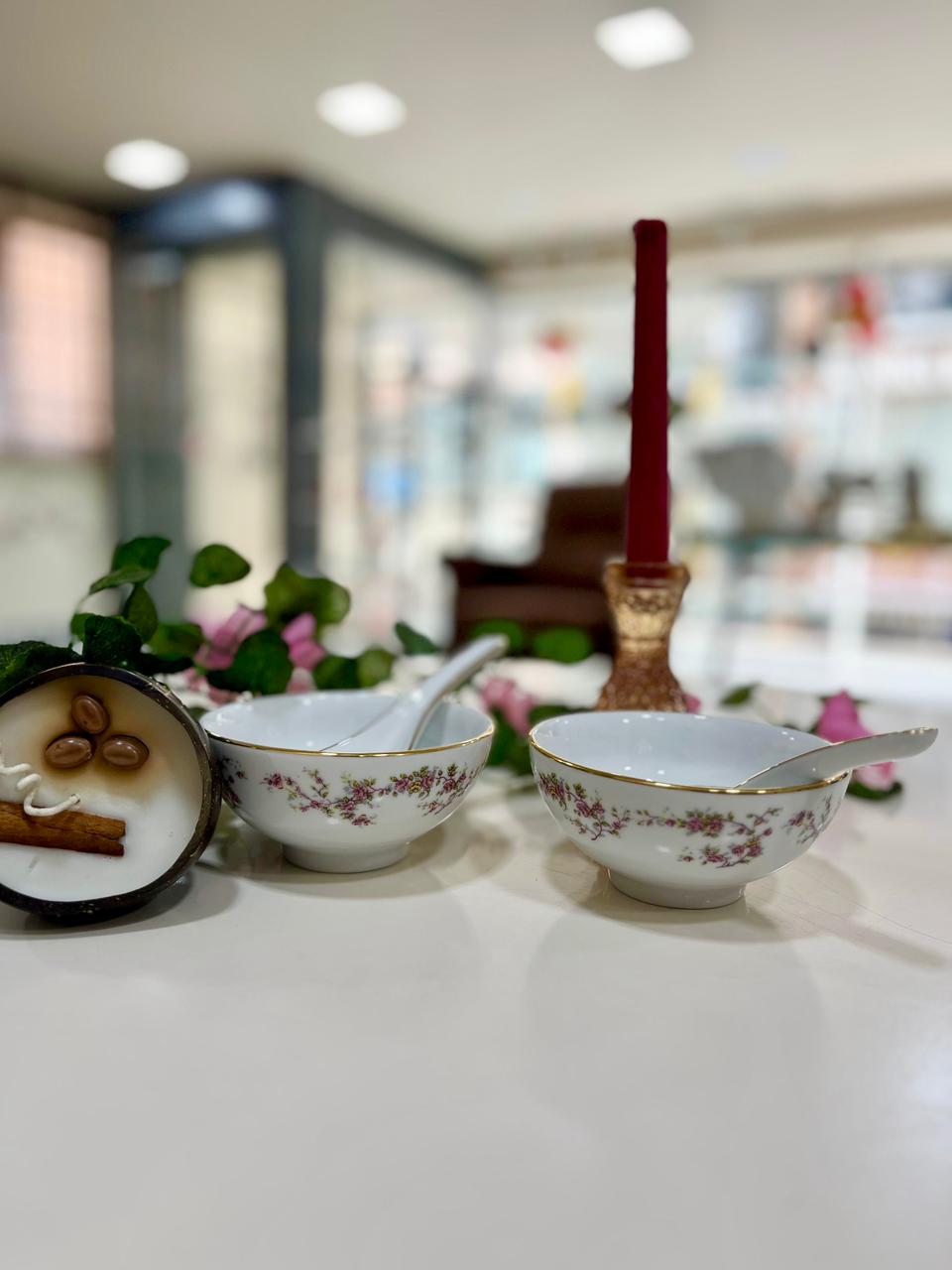 Perfect for serving soups, broths, and light meals, the set includes beautifully shaped bowls paired with matching porcelain spoons for a complete and graceful presentation. The smooth glazed finish ensures durability while adding a soft, elegant charm to your table setting.