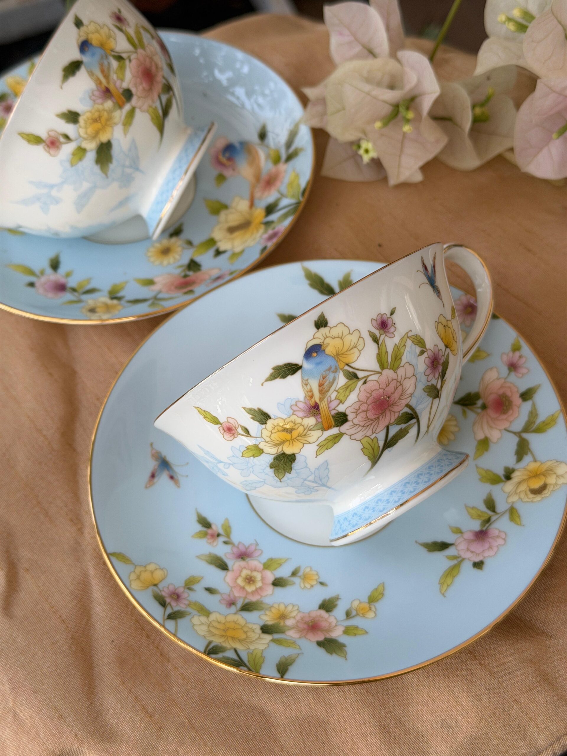 The Narumi Ramage collection embodies the delicate charm of nature, featuring intricate floral patterns intertwined with graceful bluebirds and butterflies. Crafted from Narumi’s signature bone china, this 12-piece set includes six cups and six matching saucers, each showcasing the brand’s commitment to artistry and durability.